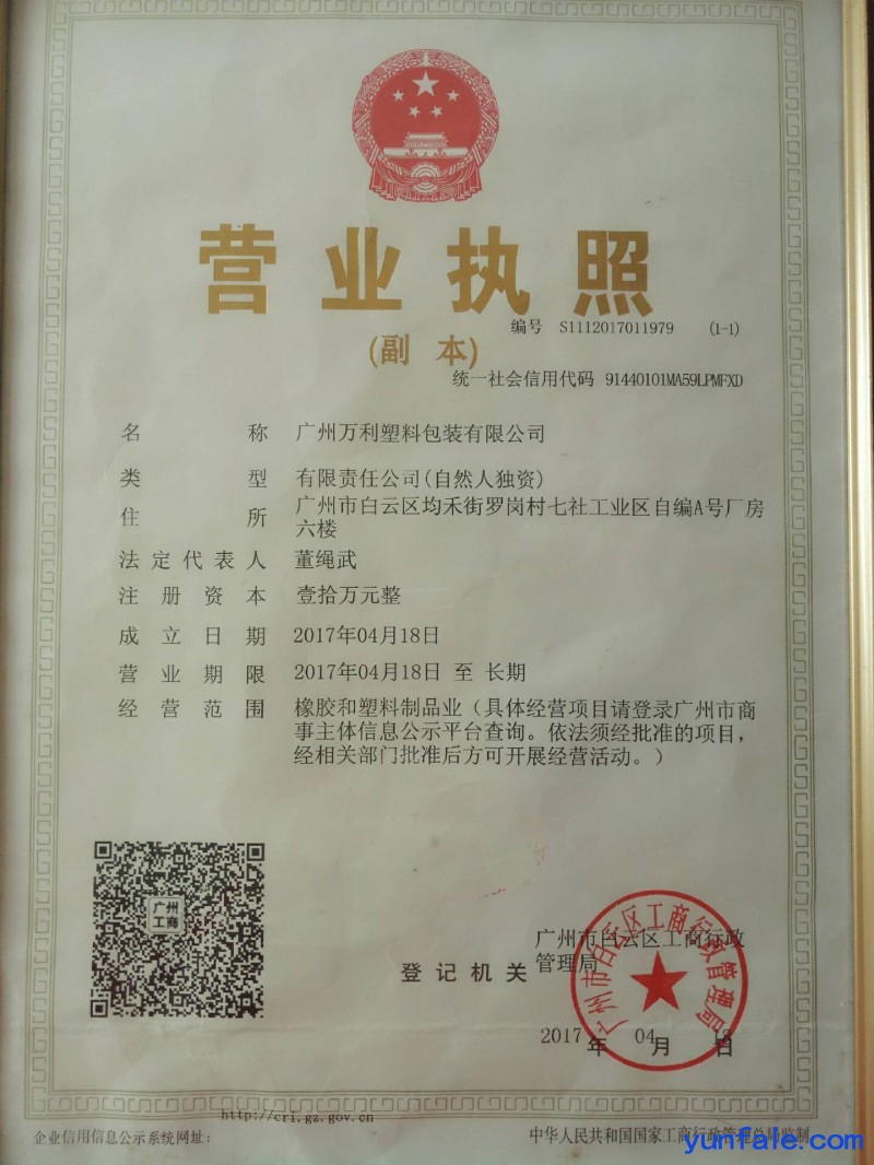 发证机构: | 广州市白云区市场监督管理局 | 发证时间 : | 2017-04-18 |